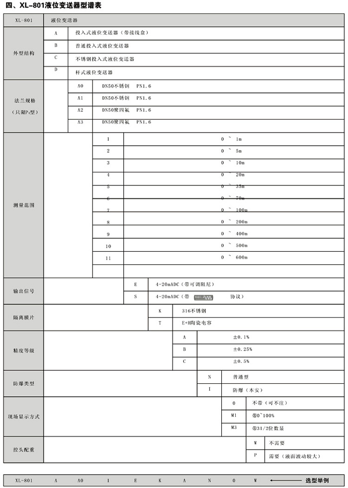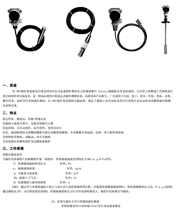 XL-801A投入式液位變送器(帶接線盒)
