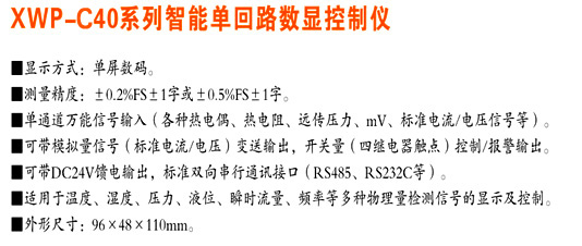 XWP-C40系列智能單回路數(shù)顯控制儀