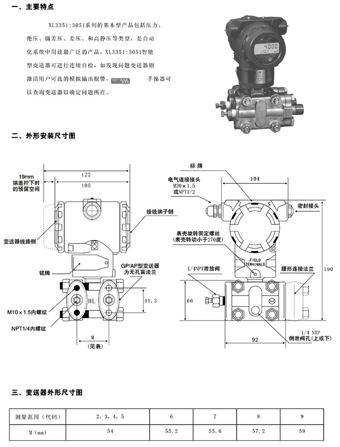 XL-3351DP/GP智能壓力/差壓變送器